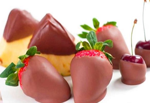 Для приготовления понадобятся любые фрукты и растопленный шоколад. В растопленный шоколад обмокните кусочки фруктов, дайте глазури застыть и нанизывайте фрукты на шпажку. Для разнообразия можно наколоть кусочек бисквита, либо фрукта без глазури. А еще вариант: приготовить шоколадную и белую глазурь.